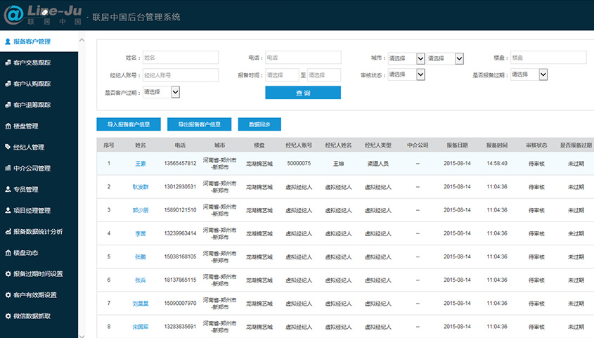 - 報備客戶管理: 管理所有報備客戶的信息,判定客戶的有效性