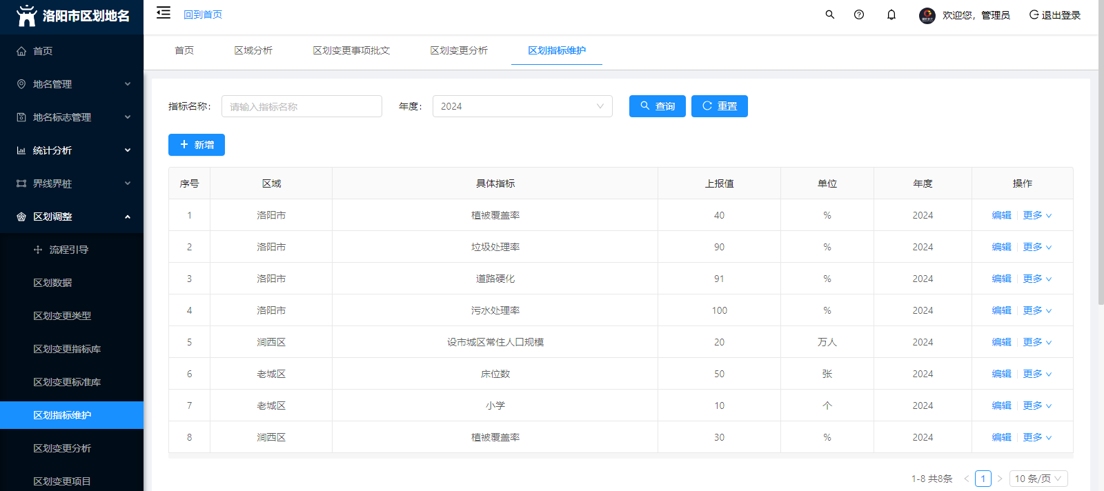 區(qū)劃調(diào)整:區(qū)劃數(shù)據(jù)、區(qū)劃變更類別、區(qū)劃變更指標庫、區(qū)劃指標維護、區(qū)劃變更分析、年度區(qū)劃變更表、區(qū)劃變更事項批復(fù)文件、歷史文件上傳