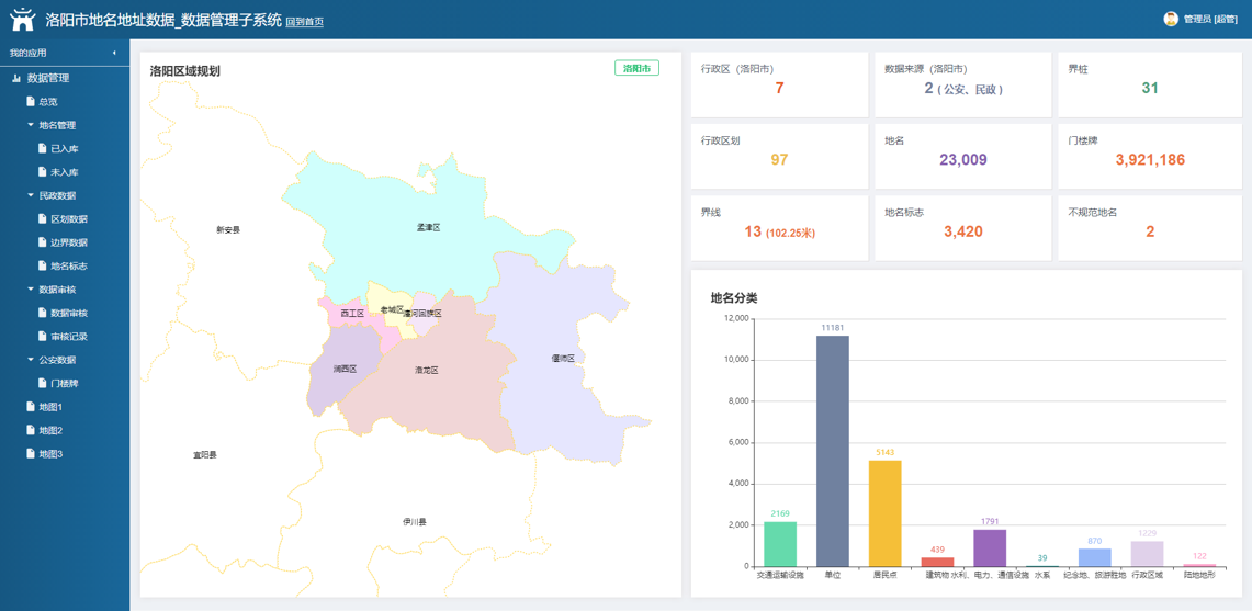 • 地名管理:地名規(guī)劃、更新維護(hù)、衍生業(yè)務(wù)、地名標(biāo)志、界線界碑、不規(guī)范地名排查等